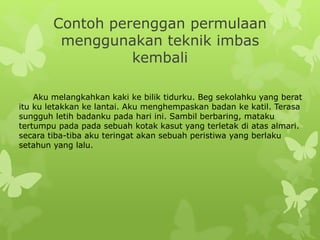 If you want to learn imbas kembali in English you will find the translation here along with other translations from Malay to English. Sesi esok 9am - 1pm akan terbuka kepada semua penduduk PJ dan. Mengapa kita menggunakan teknik imbas kembali.